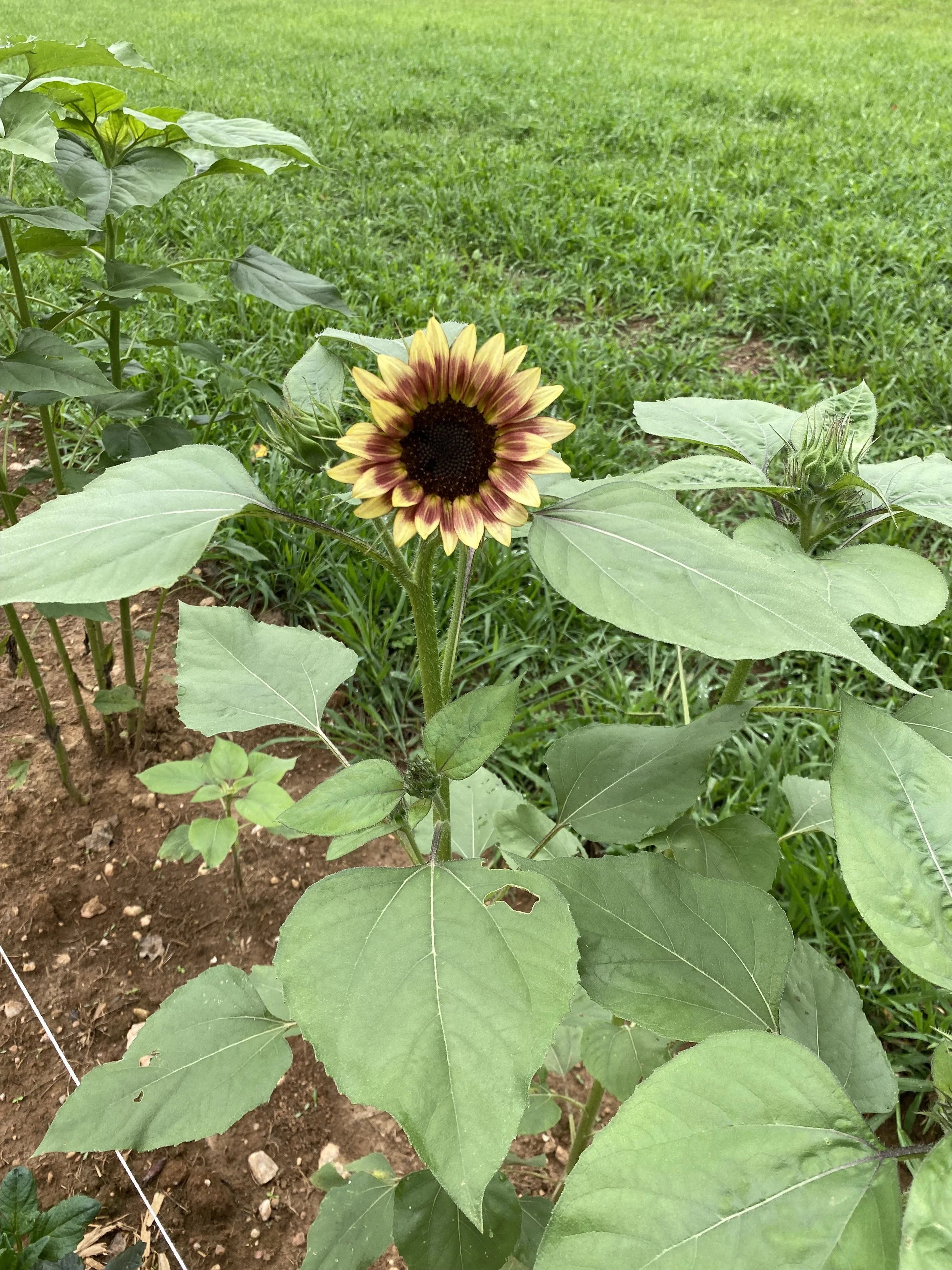 Sangria sunflowers with Corkey working in the background!