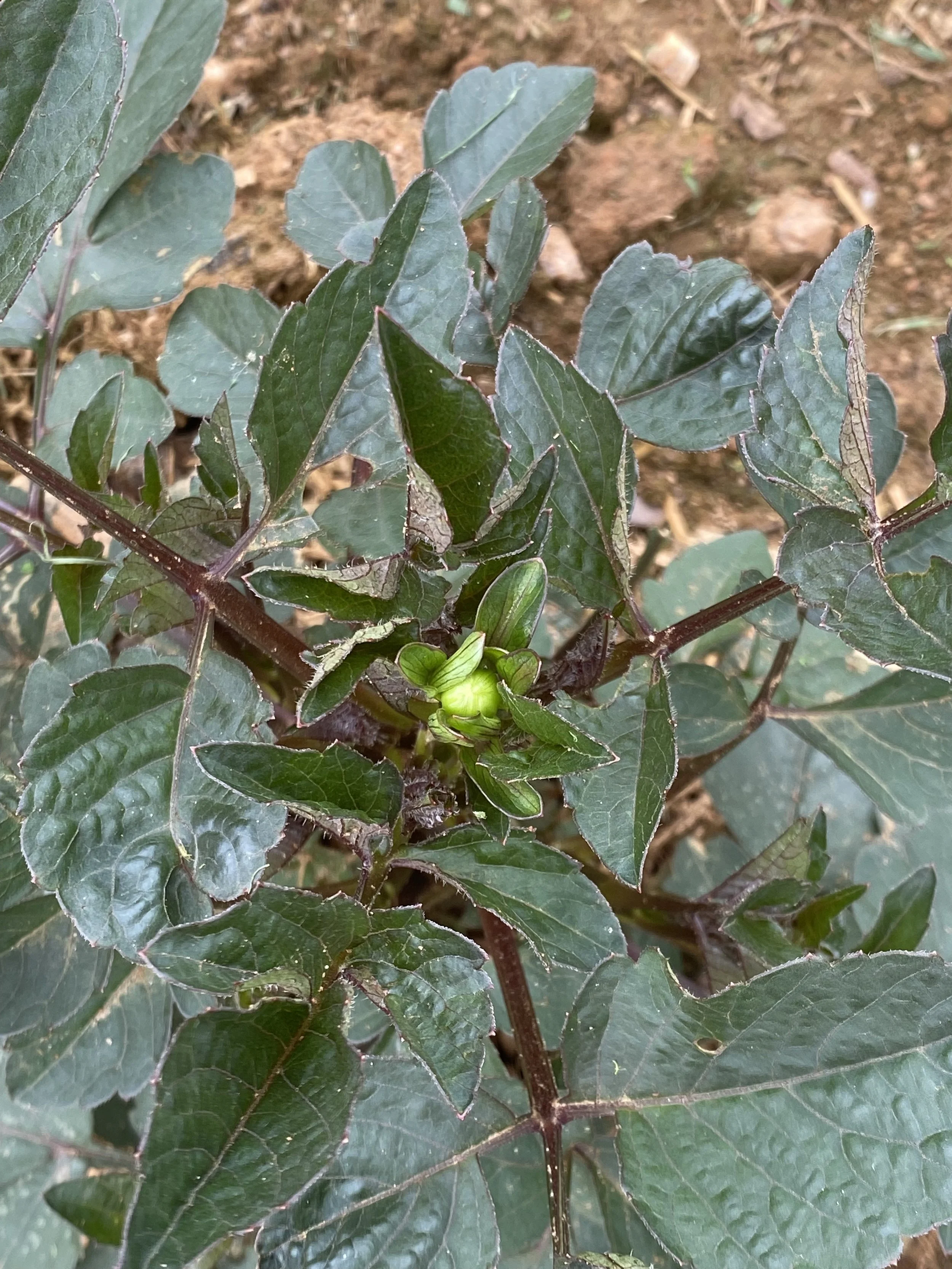 Our first dahlia bud - we discovered this on Saturday, July 27, 2024!